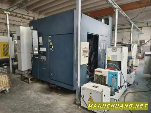 台湾高峰500卧式加工中心大功率电主轴BT50,1万转。三轴线轨,60把刀伺服刀库,带中心出水,工作台有液压夹具功能,发那科系统,有排屑器,双工作台,全闭环,千分之一转台,功能齐全,在位使用。精度非常非常好。