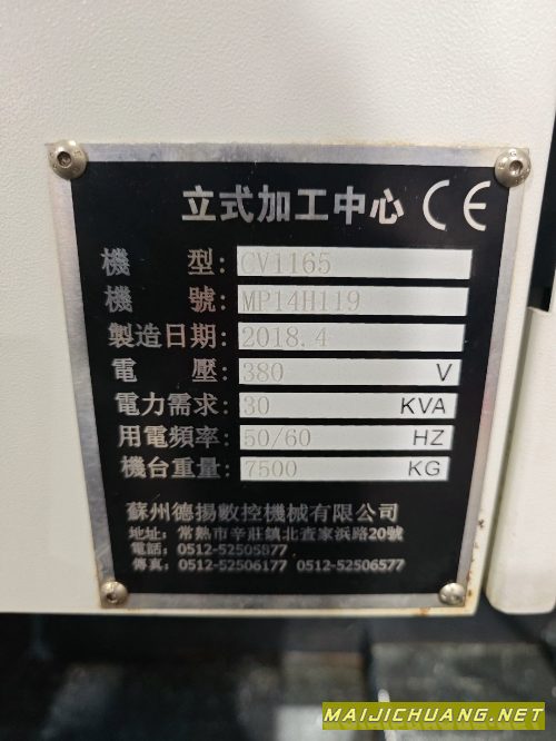:2018年出厂苏州德扬1165重型加工中心,三轴行程1120&a.