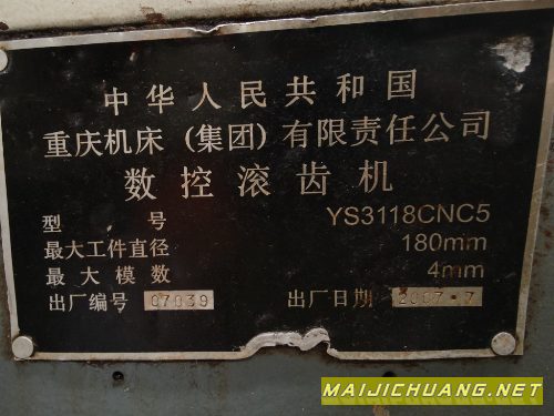 出售外企在位使用重庆五轴数控高速滚齿机YS3118CNC5 2台。加工直径180mm,模数4mm,西门子系统