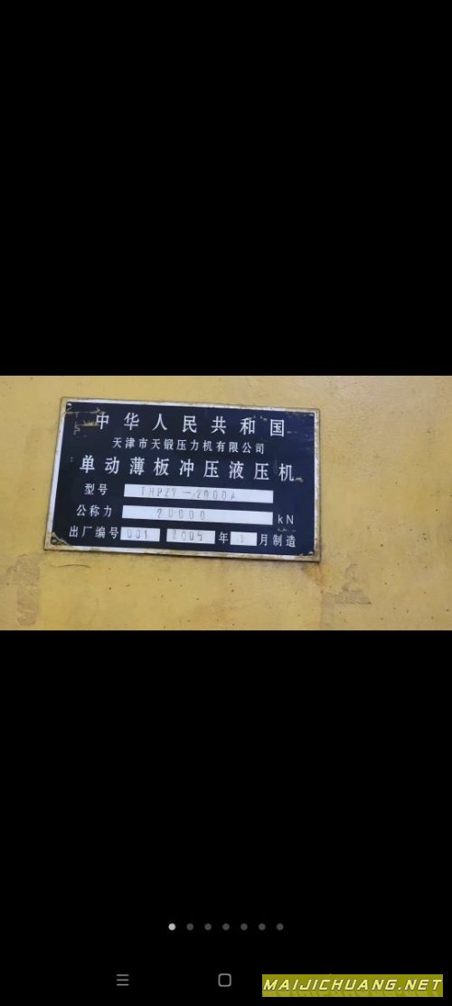 产品名称:急售:2005年框架式新款2000吨液压机,天津锻压产,新款,台面4.2米乘2.15.