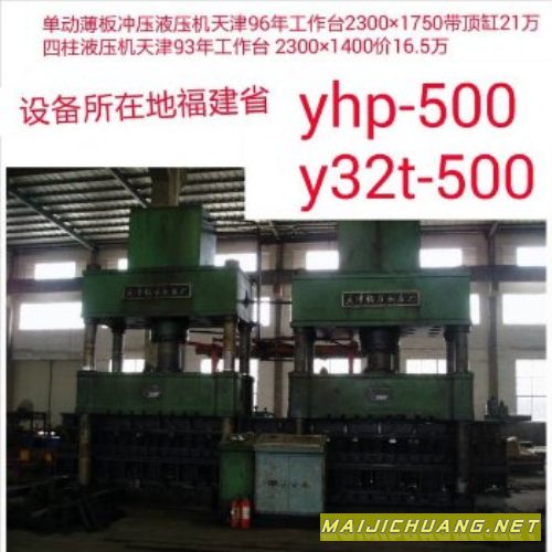 16.5万yhb-500单动薄板冲压液压机合肥93年工作台 2200×1500带顶缸 yhp-500单动薄板冲压液压机天津96年工作台2300×1750带顶缸21万