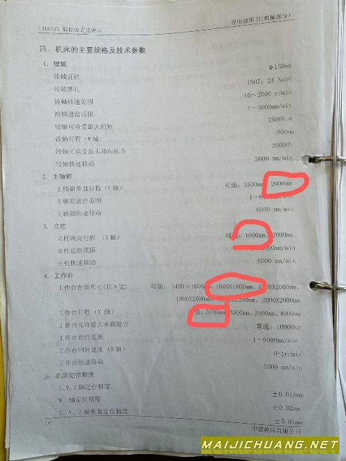 :中捷6513数控刨台镗床。工作台1.6米1.8米,三轴行程XY.