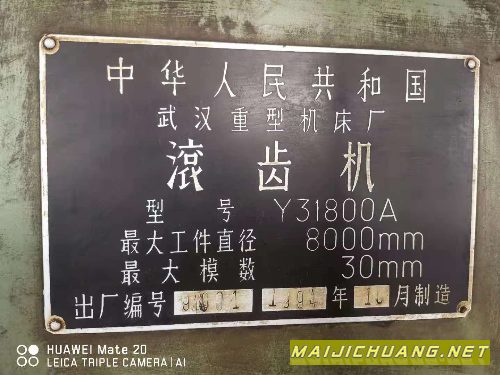 在位出售94年武重产Y31800A滚齿机,工作台3.7米,模数30,一个指型铣刀,一个滾刀架,6个辅助支架,有说明书。