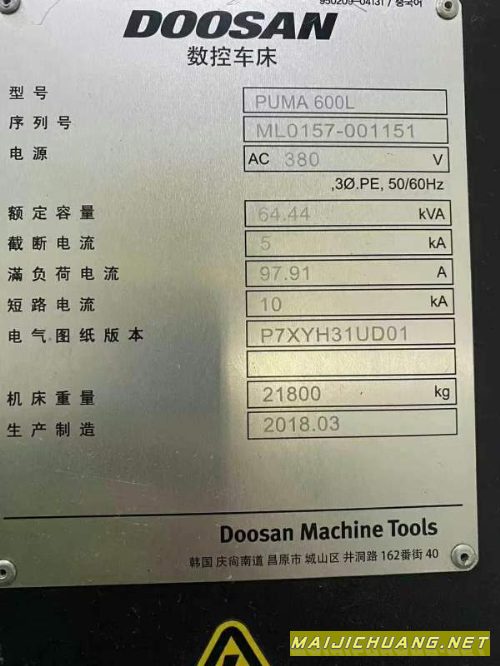 :刚刚买下一台9成新韩国原装进口斗山PUMA600L数控车床.