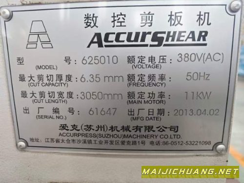 处理一台爱克数控剪板机,加工范围6.35.