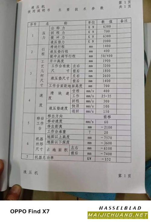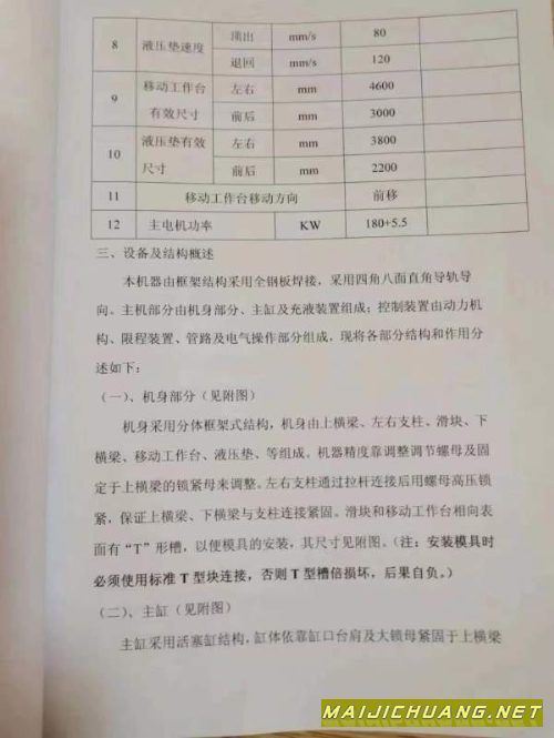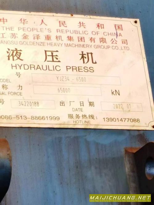 6500吨油压机!工作台2.2x3.7米!行程1.