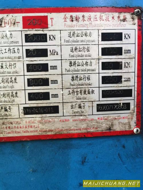 在位出售200吨粉末压力机仅试工件未生.