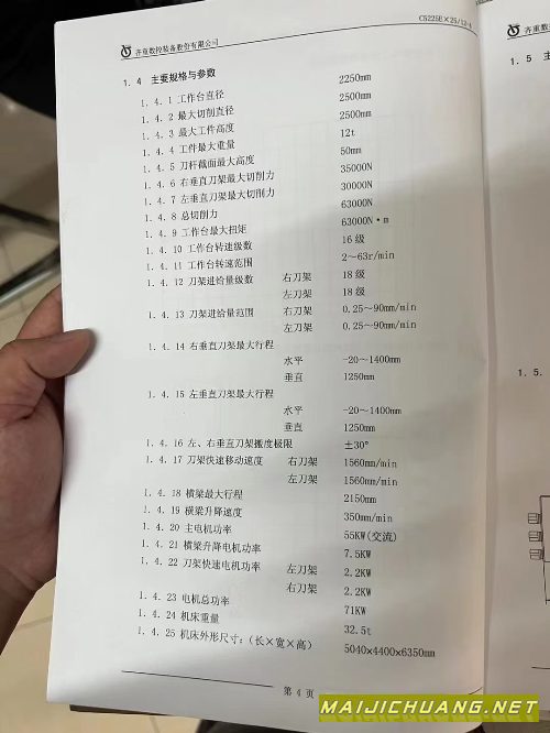 出售齐一5225立车一台