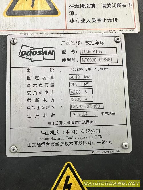 2018年斗山PUMA V405立车,12寸液压卡.