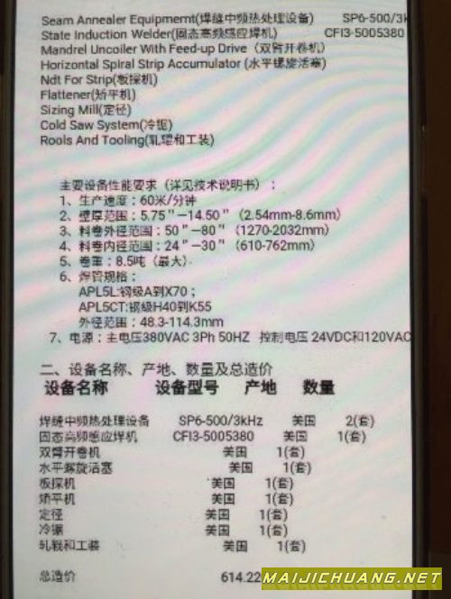 出售全新未拆封焊管生产线!