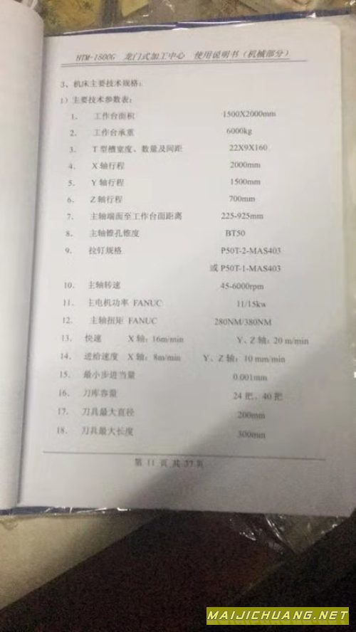 出售北一XHAD2415龙门加工中心
