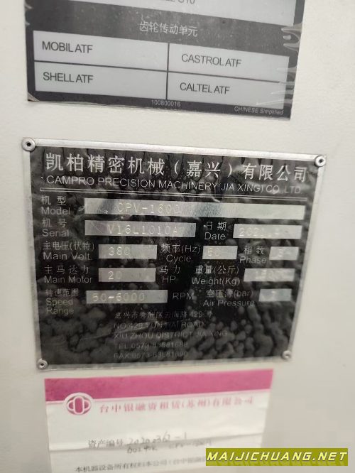 刚刚买下:2021年台湾凯柏1600加工中心.