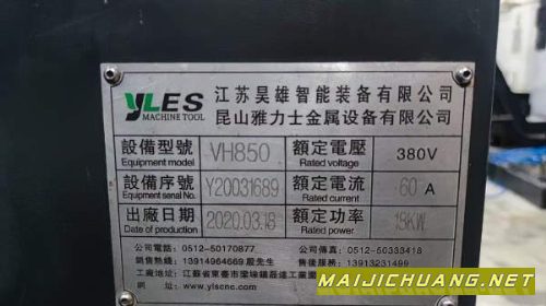 新到同款两台2020年雅力士850加工中心.