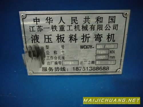 出售:中海重型100吨4000折弯机一台。
