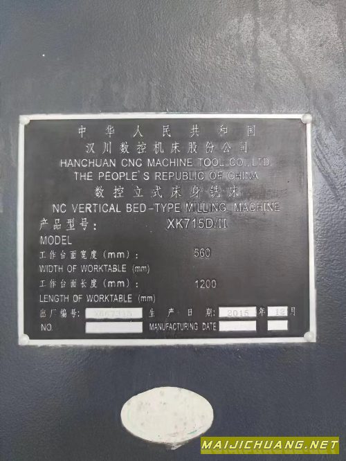 低价出售汉川XK715D数控铣一台、西门子.