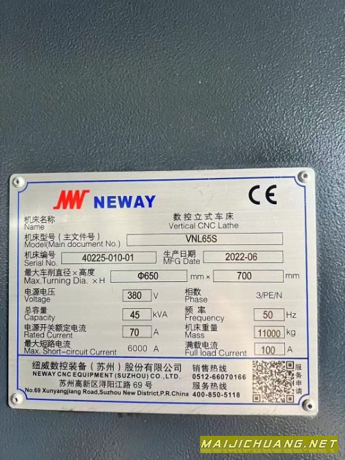 纽威VNL65S数控立车! 发那科MFplus系.
