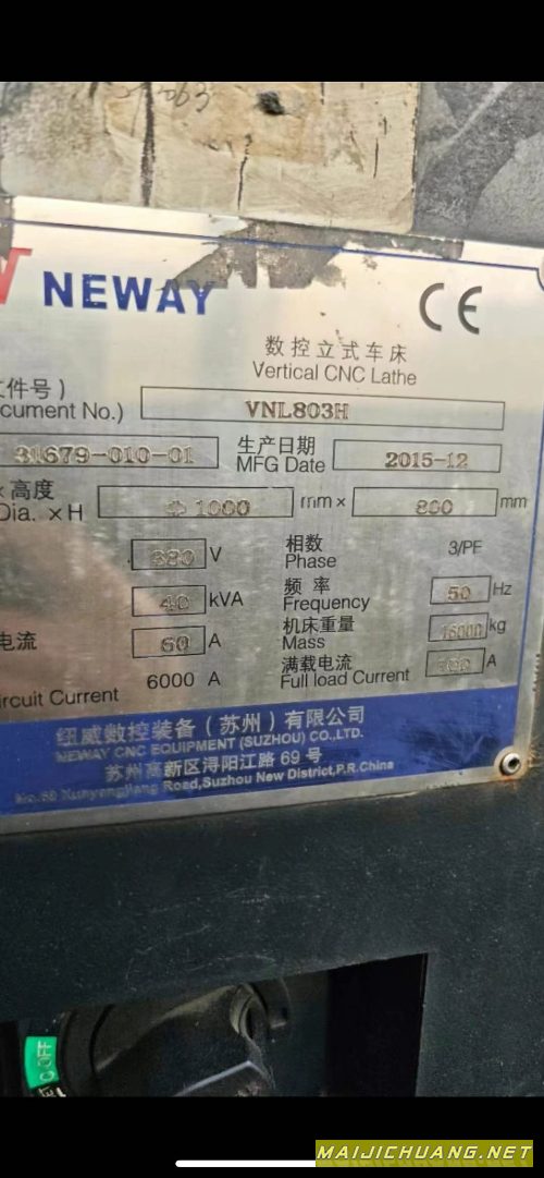 纽威VNL803H数控立车,回转直径1000,.