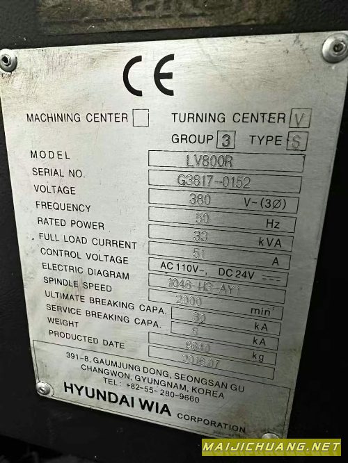 韩国威亚数控高速立车, 车削直径800,.