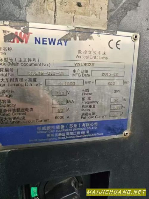 纽威VNL803H数控立车,回转直径1000,.