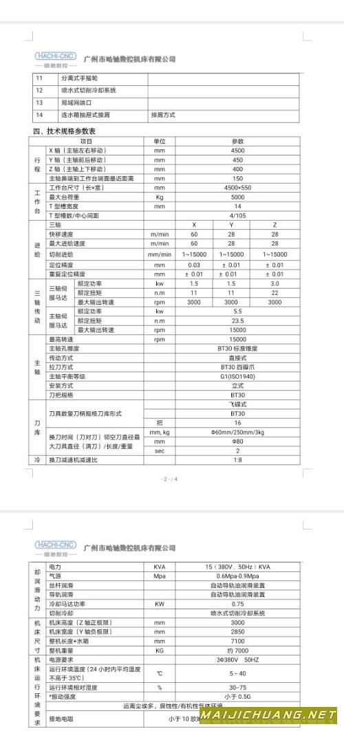 哈驰BT40铸件床身HZ4500型材加工中心