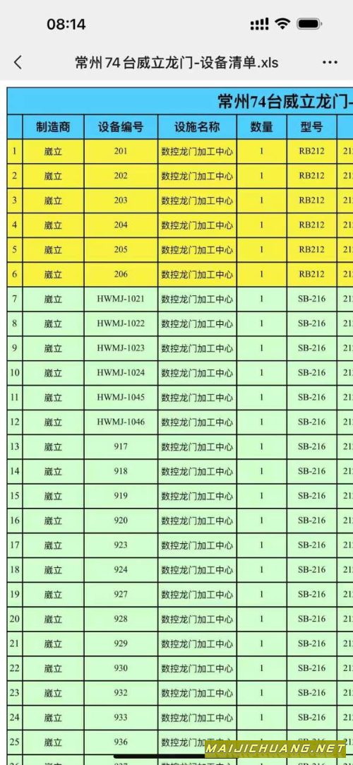 常州工厂拿下74台威立龙门,清单如下,.